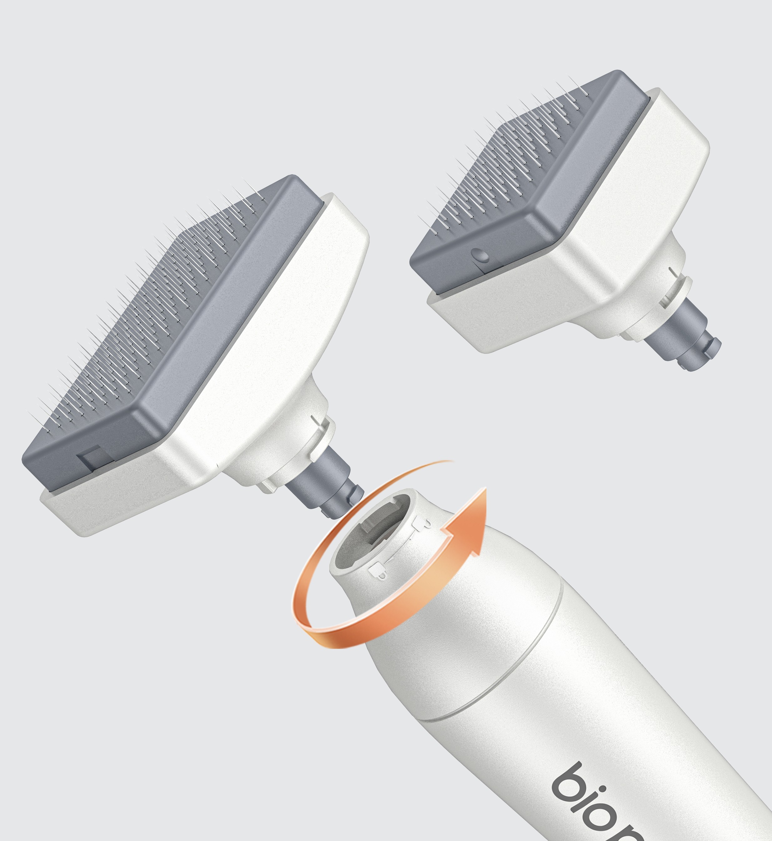 Easily switch between a 120-pin head for fast, large-area passes and a 64-pin head for focused work along parts, hairlines and localized thinning.