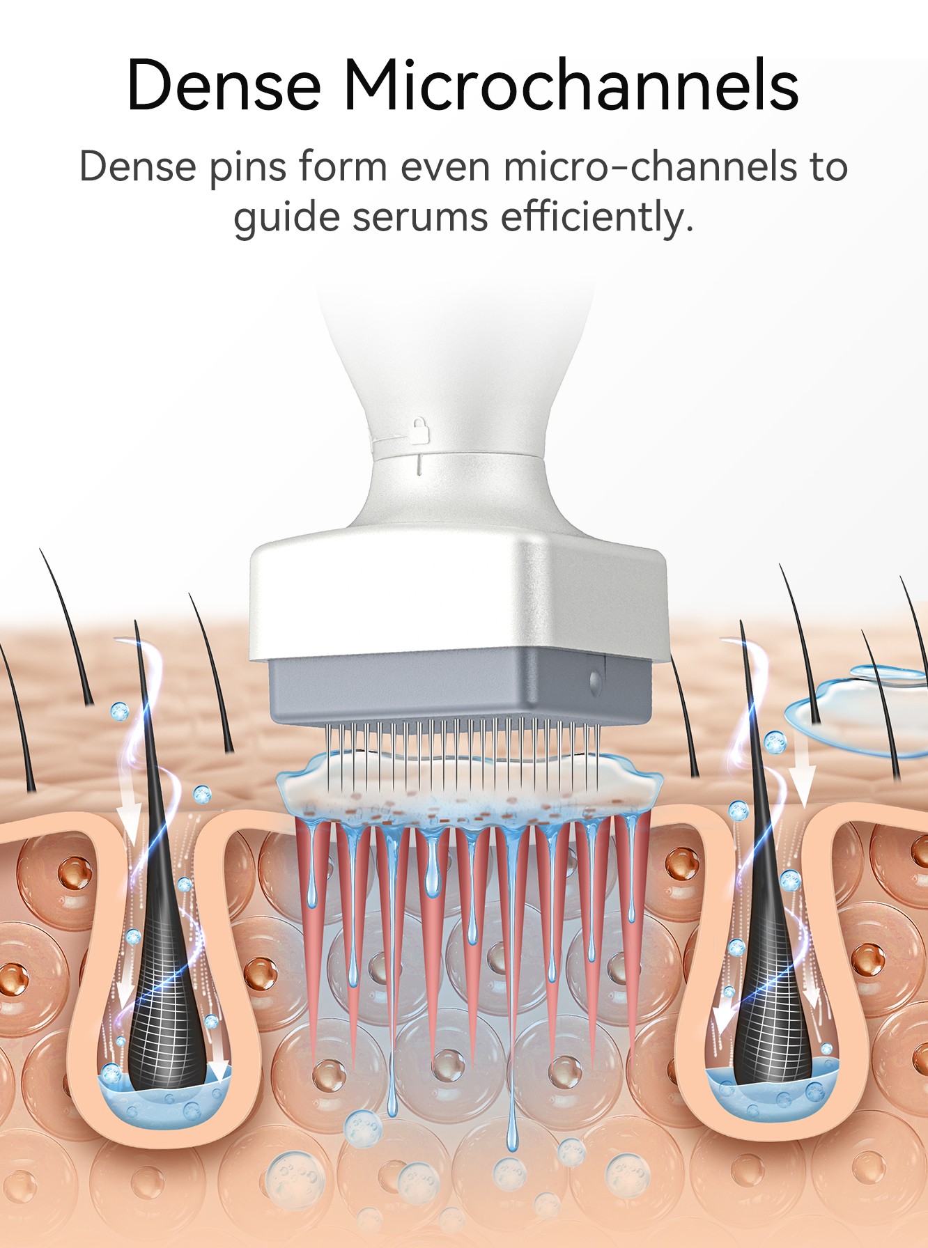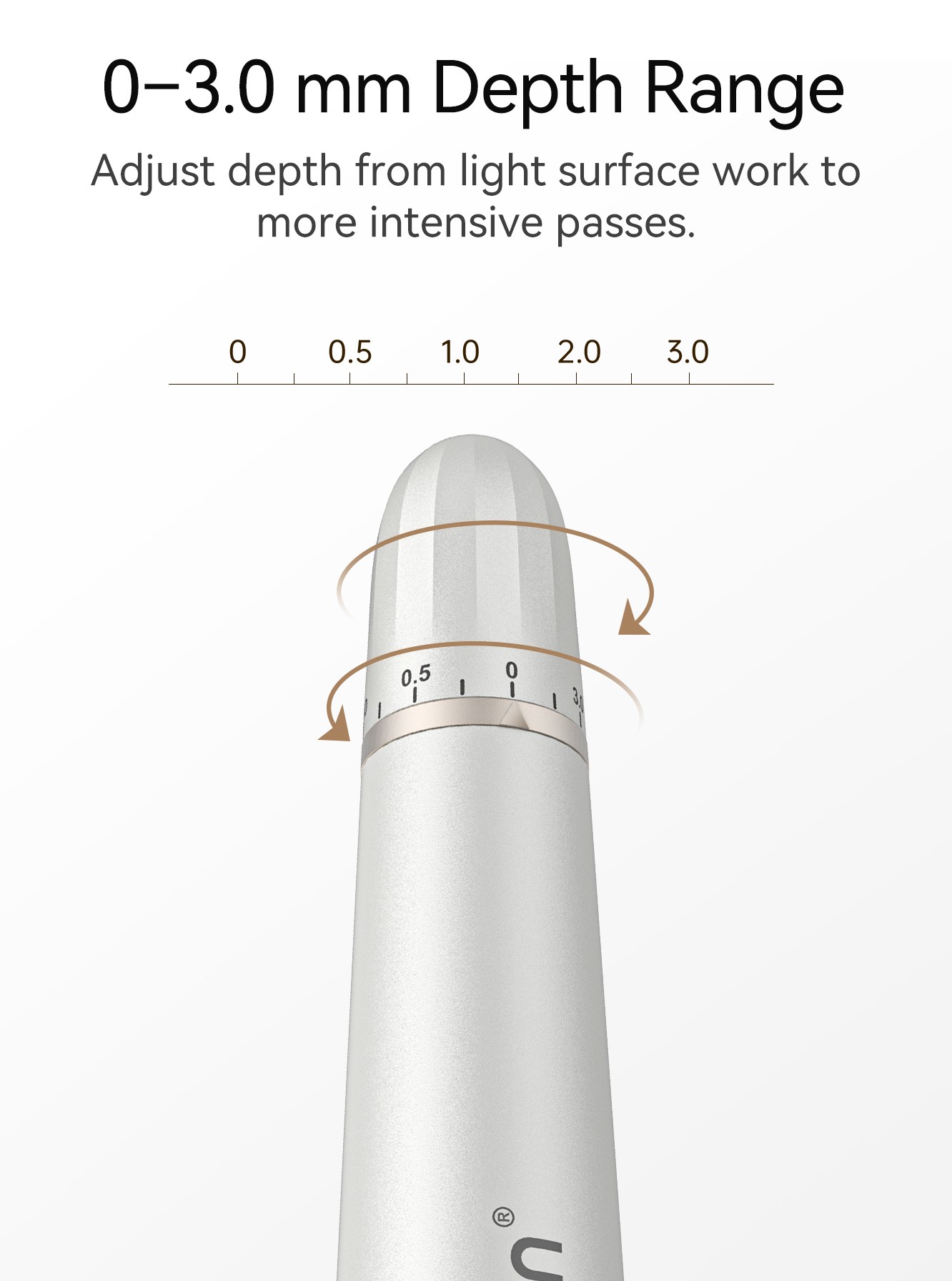 A clear depth dial from 0–3.0 mm lets you match needle length to different areas, helping keep treatments effective yet comfortable and consistent.