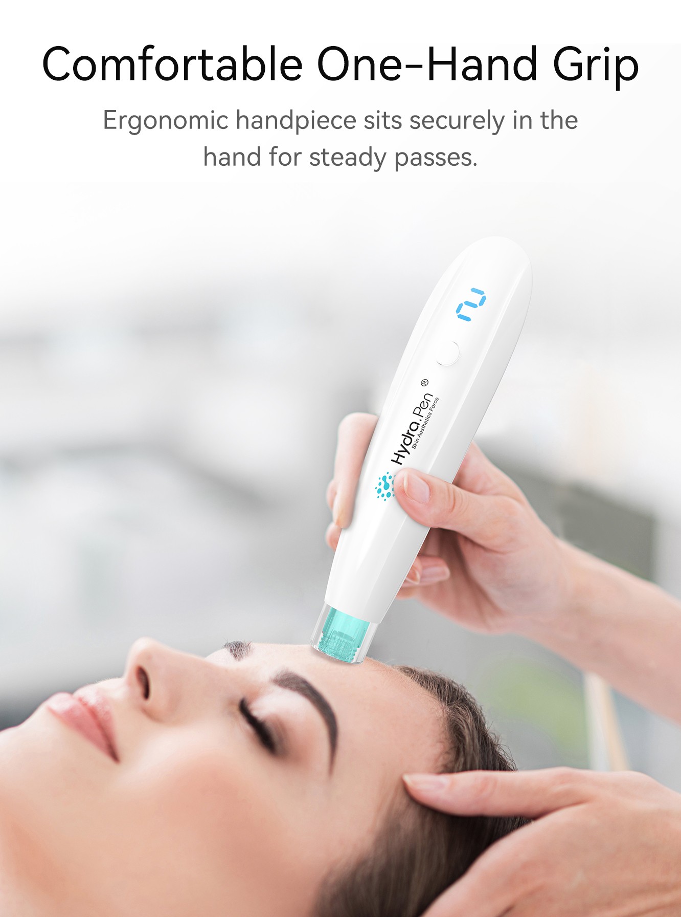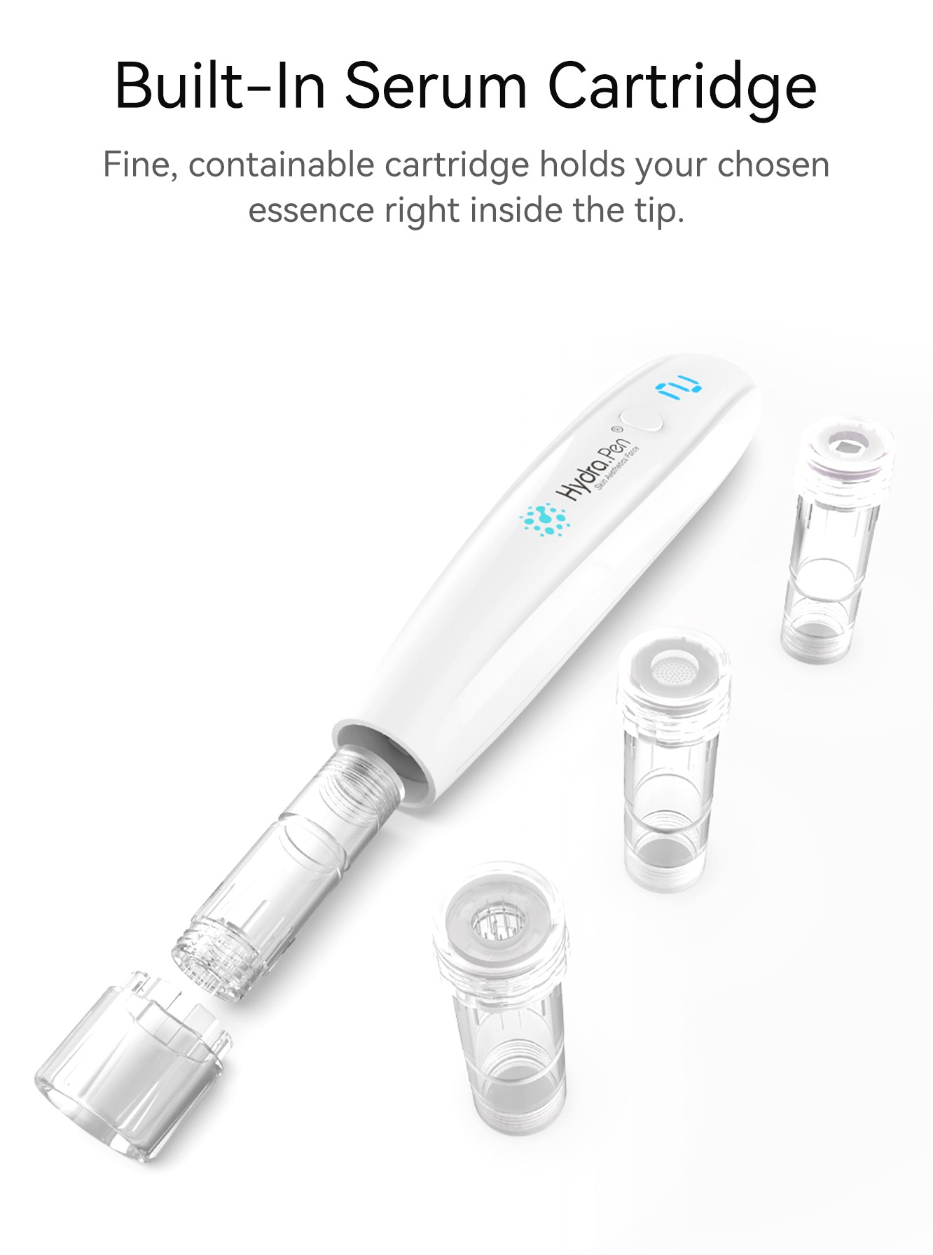 A built-in reservoir holds the serum inside the cartridge, keeping product close to the needles and away from extra handling.