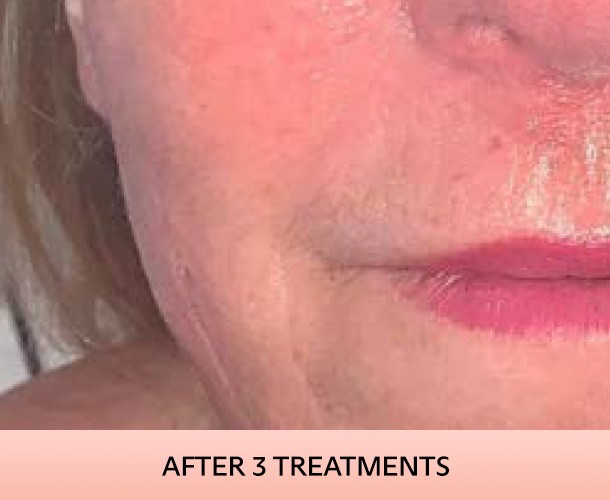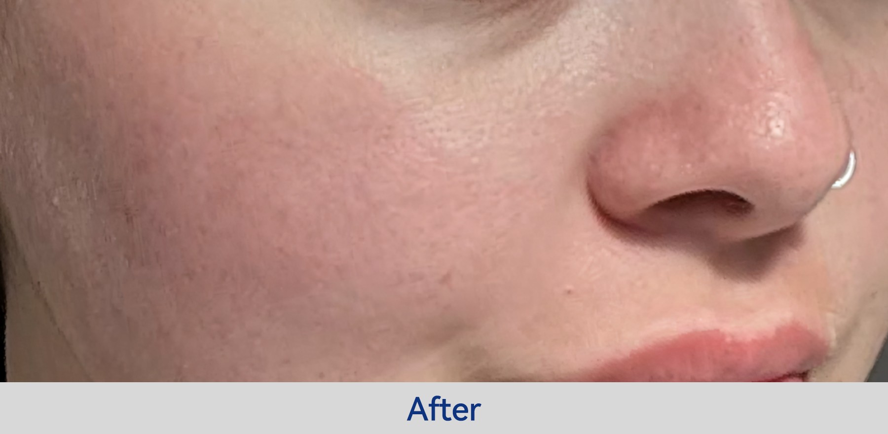 Work from nose toward ear along the cheek, following its natural contour. Keep the handpiece moving and avoid the eye area, using gentle overlapping passes.